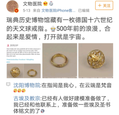 不过也有网友指出:天文球戒指英文名为astronomical ring,标准翻译应该是浑天仪戒指,它的设计灵感应该是我国的浑天仪!