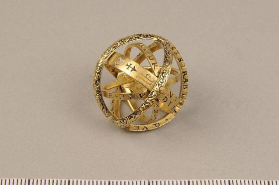 这枚戒指是瑞典历史博物馆的一件藏品,共有5个圆环,上面刻有12星座、8大行星以及古老的航海仪符号。
