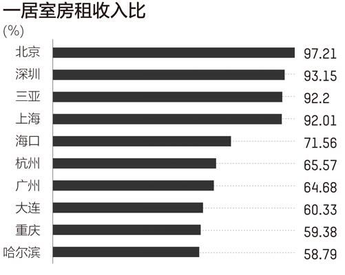 第一财经网 大都市租房难租金高,最直接原因是租金和收入的比例过高。报告显示,北京、深圳、三亚、上海四个城市整租的租金收入比远高于其他城市,高达90%以上。而三亚、厦门这类的旅游城市,合租的租金收入比相对更高。房租收入比反映在一个城市的生存压力,无疑一线城市压力是巨大的,部分二线城市也是压力不小,杭州、大连、重庆、哈尔滨纷纷挤进租房压力榜前10。近两年在人才争夺中优胜的成都、西安紧随其后。详情>>