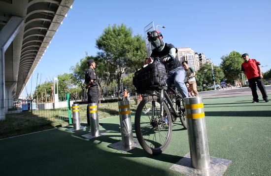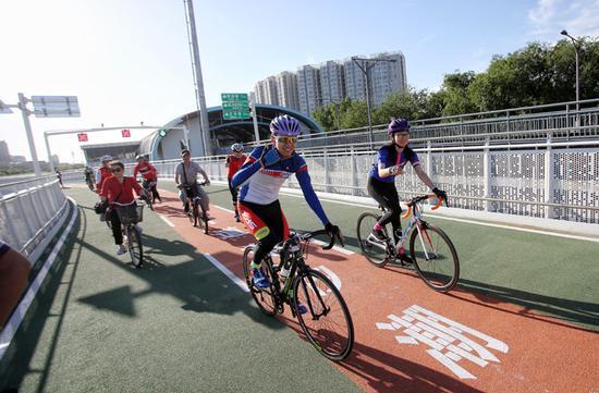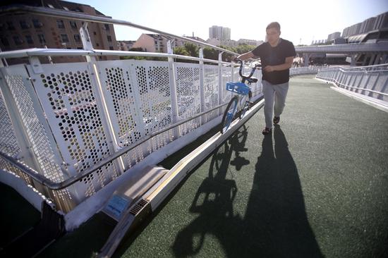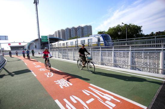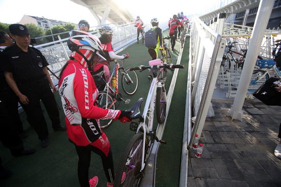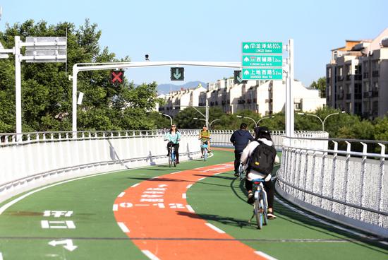 自行车专用路在6个桥梁出入口坡道首次设置了自行车助力装置。