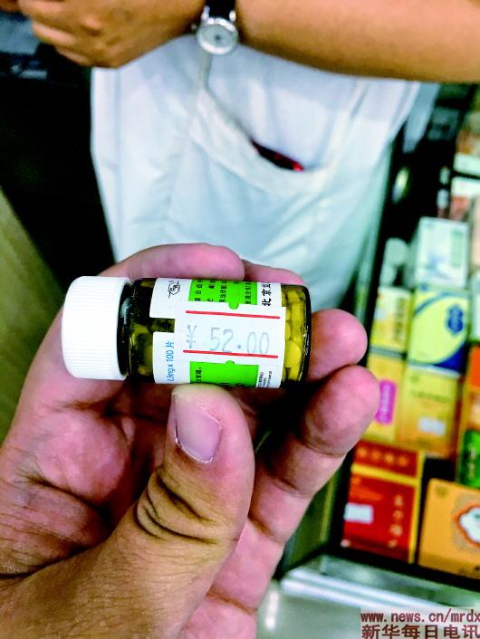 ▲5月28日,某药店销售的硝酸甘油片售价52元。记者朱文哲摄