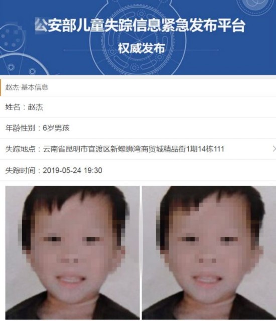 在失踪6天后,昆明6岁男童赵杰终于有了消息。不过,令人痛惜的是,孩子已经死亡,遗体是在一辆汽车的后备箱中发现的。