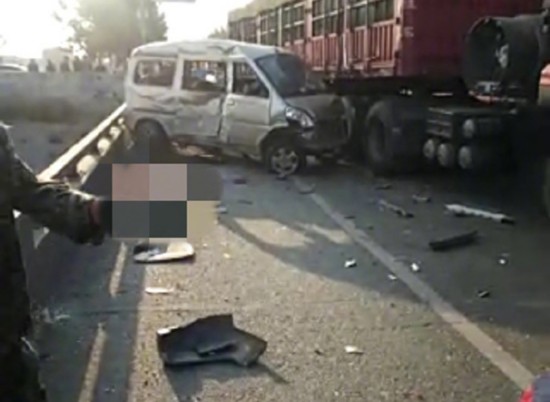 燕赵都市报微博消息,5月31日5时19分许,在衡井线晋州市赵兰庄村小桥路口处,发生一起道路交通事故。一辆车牌号为晋J89882的红色重型货车由东向西行驶至案发现场,与由南向北行驶的车牌号为冀A700CV面包车相撞。该事故造成面包车内5人当场死亡,一人送医院抢救无效死亡。目前,该交通事故正在进一步调查处理中。