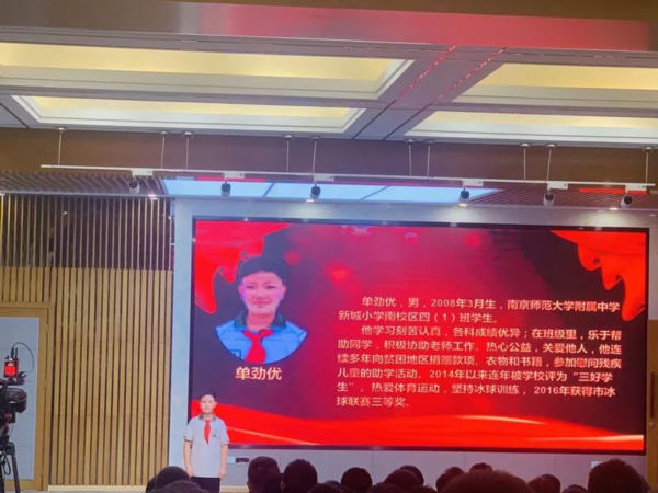 我校单劲优同学荣获南京市“新时代好少年”称号