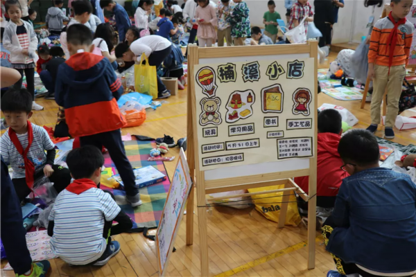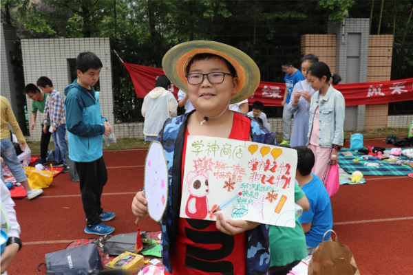 活动开始啦,校园内人头攒动、摩肩接踵。各班级在相应的场地精心布置了“小卖摊”,海报标语各具特色,各类商品琳琅满目。每个摊位的“老板”们都使出了浑身解数,促销手段五花八门,欢笑声、叫卖声更是此起彼伏,整个校园充满了欢声笑语。短短一个小时的时间,张张笑脸满载而归。