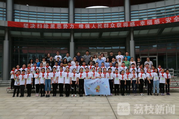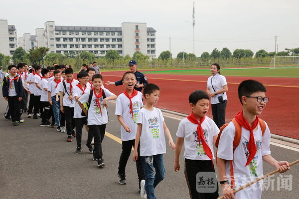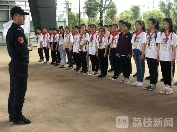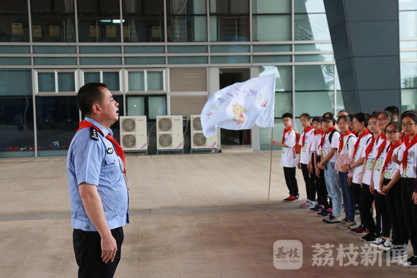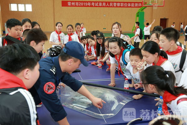 这群孩子来自常州市局前街小学六年级(5)班。下午两点,常州市人民警察培训学校校长张志保在校门口致六一欢迎词:曾经我们也是孩子,只是忘了当初的样子,欢迎你们来到校园,在你们欢快的声音里,有我们童年的影子……期待今天你们过一个不一样的六一儿童节。
