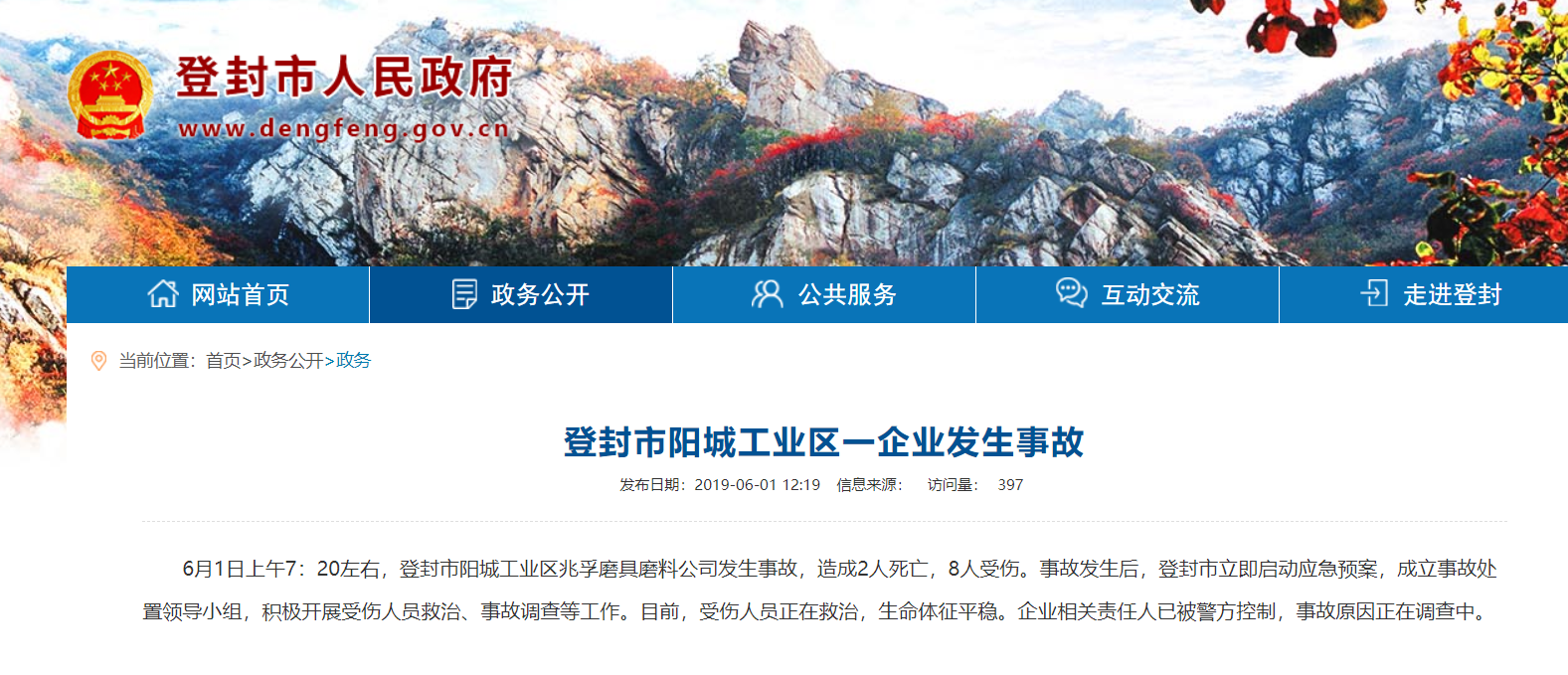 荔枝新闻讯 据河南登封市人民政府通报,6月1日上午7点20左右,登封市阳城工业区兆孚磨具磨料公司发生事故,造成2人死亡,8人受伤。事故发生后,登封市立即启动应急预案,成立事故处置领导小组,积极开展受伤人员救治、事故调查等工作。目前,受伤人员正在救治,生命体征平稳。企业相关责任人已被警方控制,事故原因正在调查中。