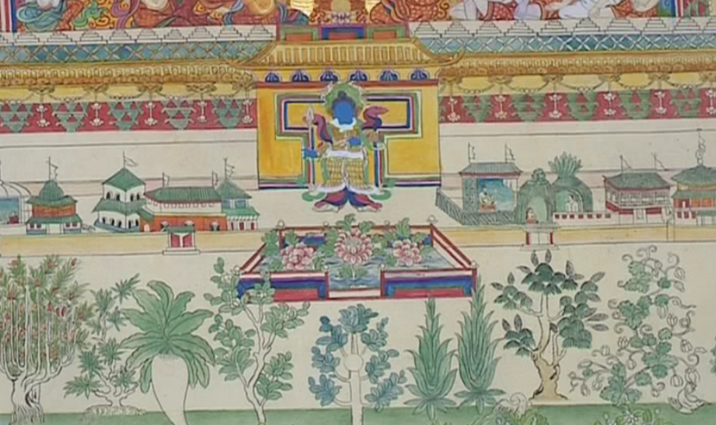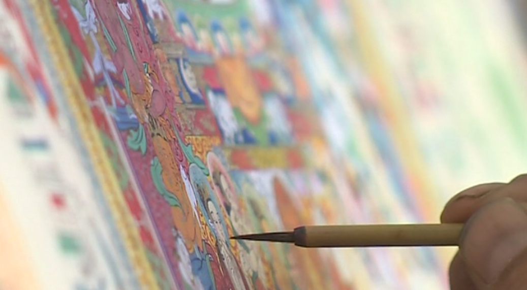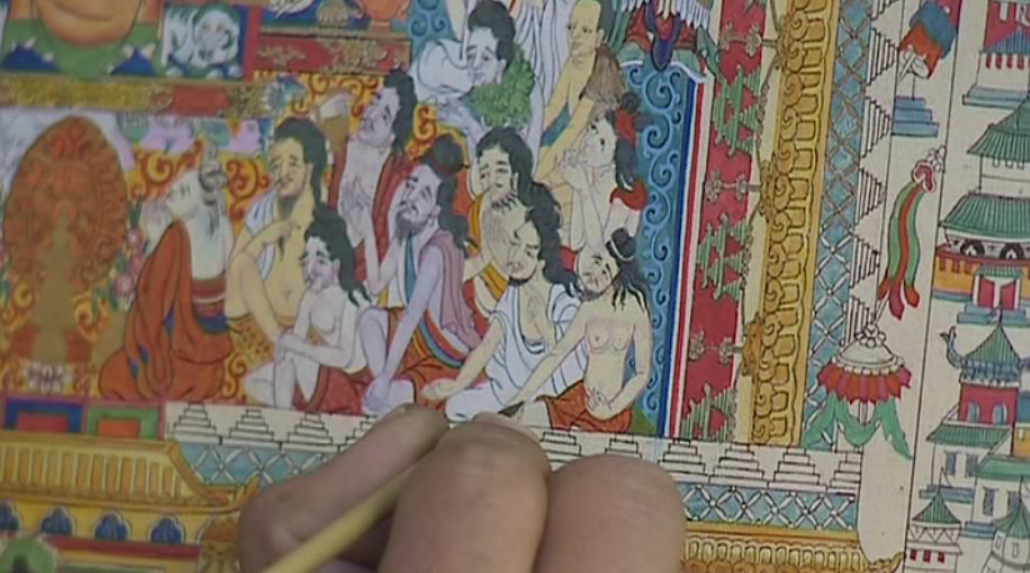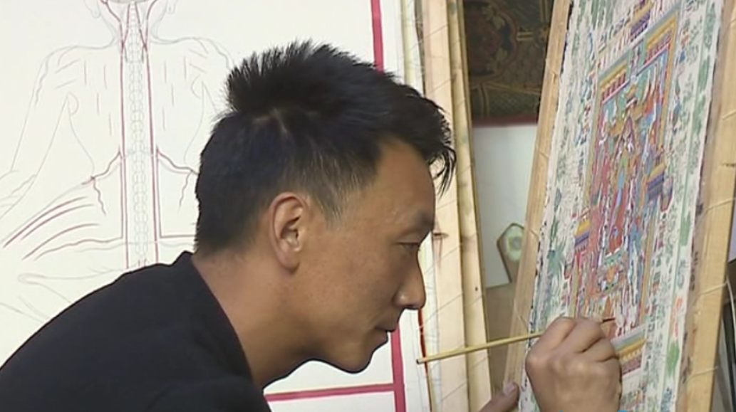 在古城拉萨八廓街里的一处居民大院里,画师晋美和他的徒弟盘腿而坐,正在专心的绘制唐卡。与往常绘制的宗教类题材唐卡不同,这一次他起笔落笔间即将展现的是专门表现藏医学内容的唐卡,藏语称“曼唐”。
