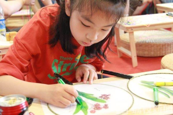 在端午习俗的体验中,最热闹的当属画团扇了,几乎每一个小朋友都亲手在团扇上画了各种花样。