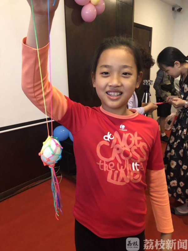 小王同学则向大家展示了自己亲手编制的鸭蛋网,“以前每到端午节奶奶都会买一个鸭蛋网装上鸭蛋送我,今年我可以用上自己编制的鸭蛋网了。”