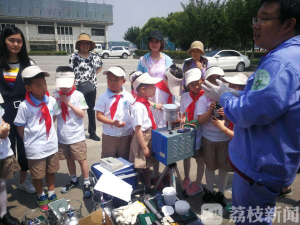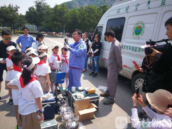 活动中,环境监测工作人员带领大家采集气样,普及pm2.5相关知识点,近距离参观了空气质量检测仪器,并为同学们讲解使用原理。随后,同学们又来到江边趸船上,在环境监测专业人员的指导下,自己动手采集长江水样;在长江岸边绿茵草地动手挖土、采集标本、装入“江豚瓶“中封存。