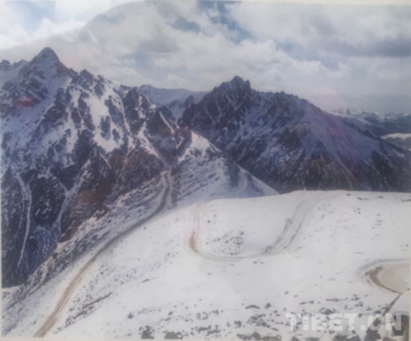图为车过折多山。 翻拍:龙真多吉