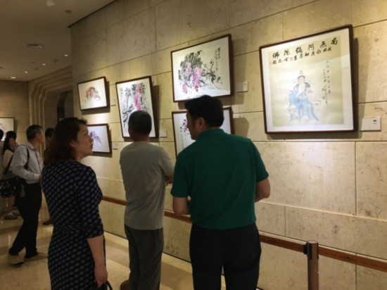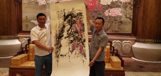 据了解,这次展览时间从今天起至7月31日,为期两个月。展出的30多件作品均为紫藤题材。每一幅画作,或虬枝攀缘曼妙舞动,或花香四溢沁人心脾,和着灵山的钟声,让人心驰神往、百看不厌。随展的李俊之子李祉蓁的工笔画作品,也得到了专家和业内人士好评。来自全国各地的100多位书画艺术家观摩了画展。