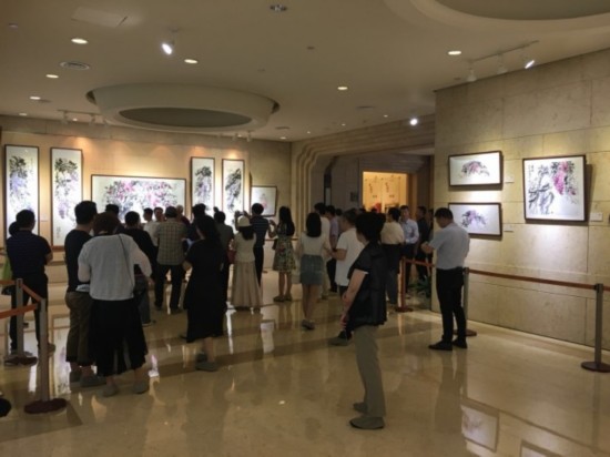 今天上午,由省花鸟画研究会、市文联主办的“笔含春韵写紫魂”李俊花鸟画作品展在无锡灵山梵宫举行。