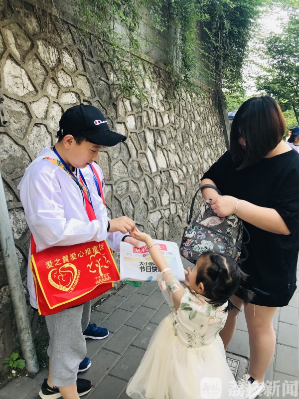 6月1号早上8点30分,在南京玄武湖解放门,来自40多所幼儿园中小学310位孩子们做起了爱心小报童,他们义卖筹集的善款将全部用于南京福利院爱之翼中心助养的9个孤残儿童日常生活开销,这9个孤残儿童中,年龄最大的5岁,最小的3岁。