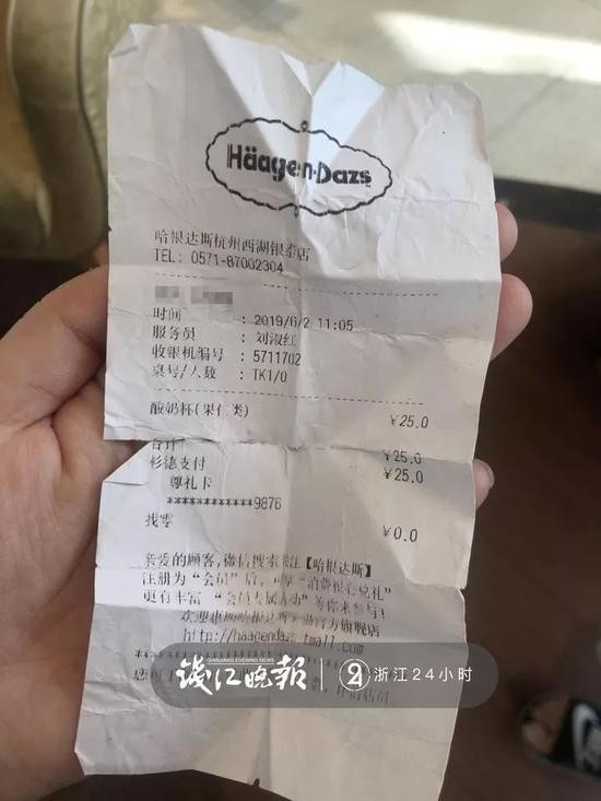 本报讯 昨天上午11点,杭州的江女士带着孩子,和亲友去西湖边去玩。舅舅带孩子在哈根达斯买了一杯果仁酸奶,孩子吃了快一半就叫妈妈,“这个酸奶舀不起来。”