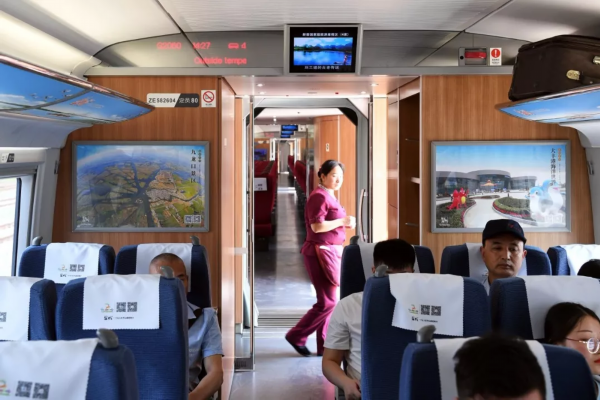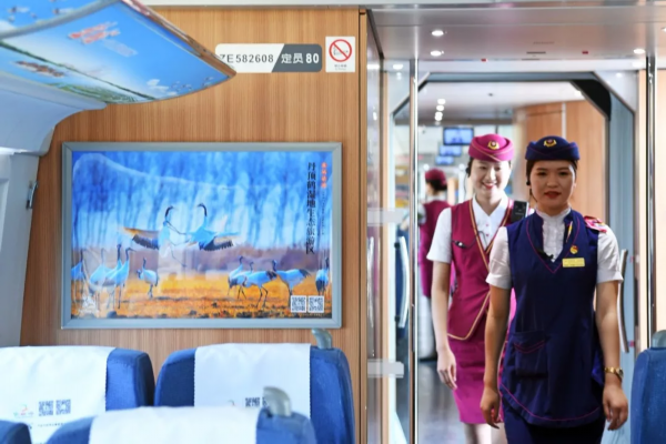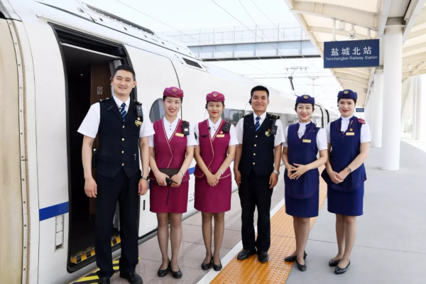 “盐城北至北京南以及盐城北至石家庄的动车组列车,现在全部冠名‘黄海湿地号’。”列车长王海珍介绍,盐城与北京、石家庄之间开行动车组列车后再冠名,让更多的外地旅客知晓了盐城,扩大了盐城的知名度。