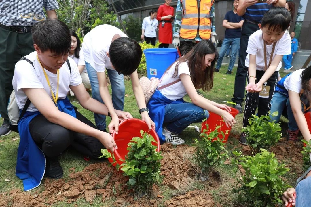 欢迎仪式后,在剧院综艺厅西侧的绿地上,两岸青少年分组合作,共同栽种了茉莉和雪松,为今天的美好相遇留下了芬芳而长青的纪念。
