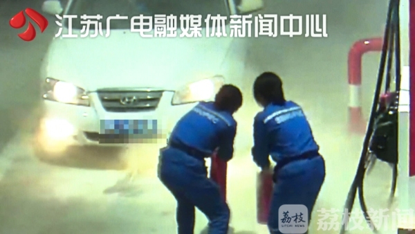 拔销、压把、喷射……两名加油员面对突如其来的危险,快速而果断地处理。经历惊心动魄的两分钟后,火势终于被扑灭了。据了解,这辆车起火的原因是因为车辆雾灯线路老化引起,随后车子被送往附近维修店修理。