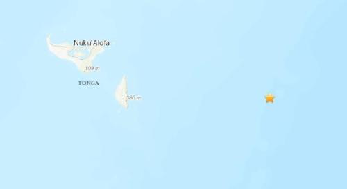 南太平洋岛国汤加东部附近海域发生5.0级地震。(图片来源:美国地质勘探局网站截图)