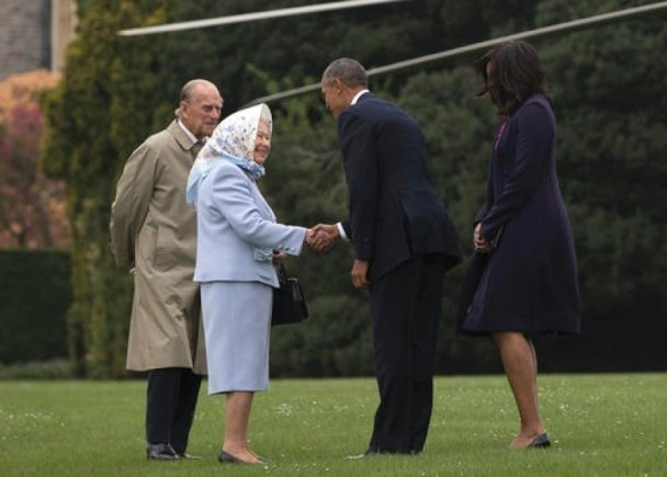 2016年,奥巴马夫妇访问英国时会见女王。图源:香港东网