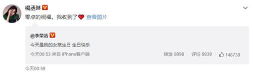 今天是杨丞琳35岁生日,准备抢0点发祝福的李荣浩遇上微博bug……