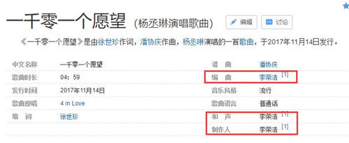 比如,他们的音乐里,都有着对方:杨丞琳的歌《一千零一个愿望》,从编曲、和声、到制作人都是李荣浩:
