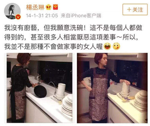 除了事业上的互相支持,在他们的社交网站上,也处处是生活里的甜,比如杨丞琳说自己没有厨艺,但是愿意洗碗~