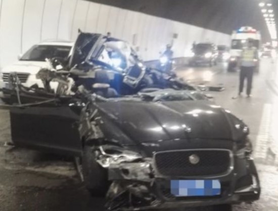 (原标题:今晨重庆双碑隧道三车追尾 轿车车顶被削)