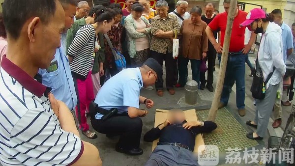 6月2日早上8点多,有市民在建邺区福园街路边看到一名老人躺在地上,据说躺了一夜。