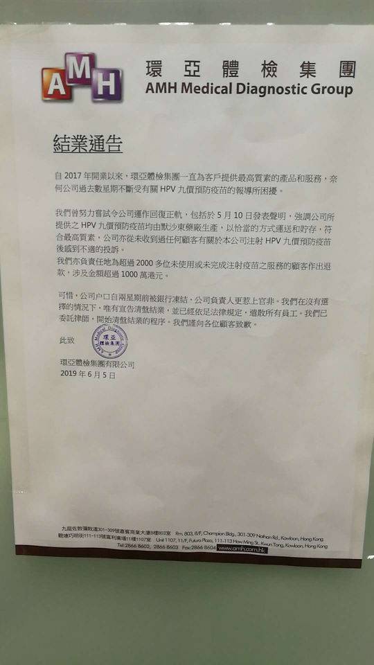 环亚称,已经为超过2000多位未使用或未完成注射疫苗的顾客退款,涉及金额超过1000万港元。两周前,公司户口被银行冻结,公司负责人惹上官非,公司没有选择只有宣告清盘结业,并遣散所有员工。目前,公司已委托律师,开始清盘结业的程序。