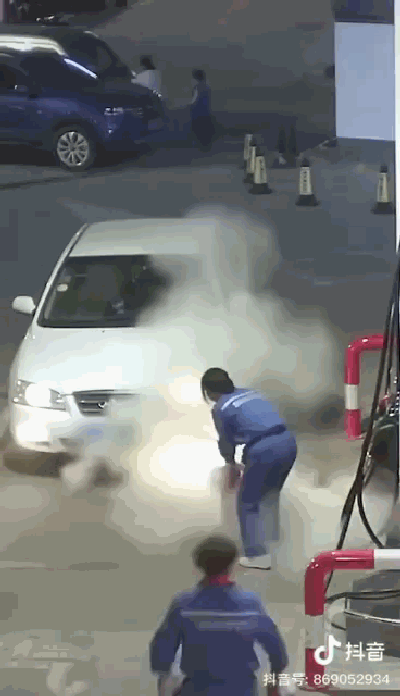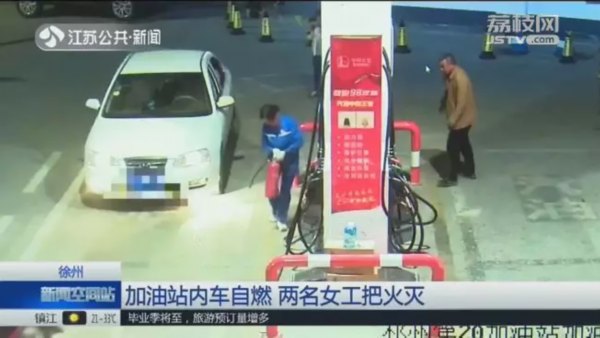 徐州一加油站内车辆起火,两名女工迅速灭火