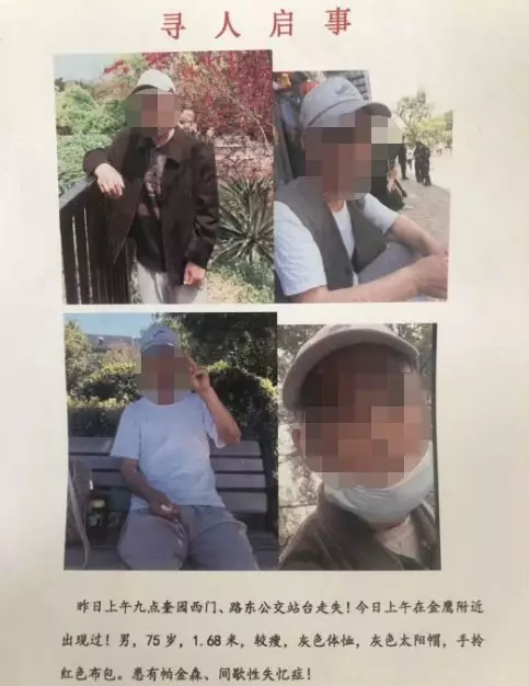 一位身患帕金森、间歇性失忆症的老人走失
