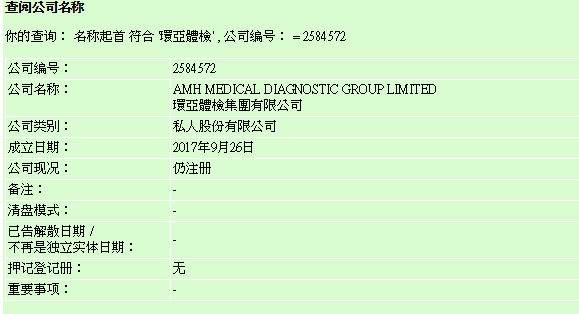 荔枝新闻检索香港商业登记网站发现,环亚体检集团成立于2017年9月26日,公司现状仍显示“仍注册”,但环亚体检集团的电话已经无人接听。