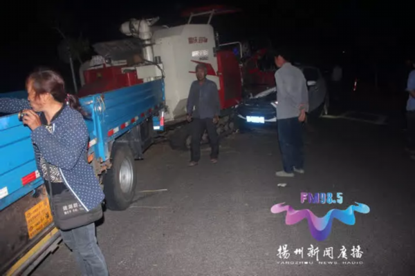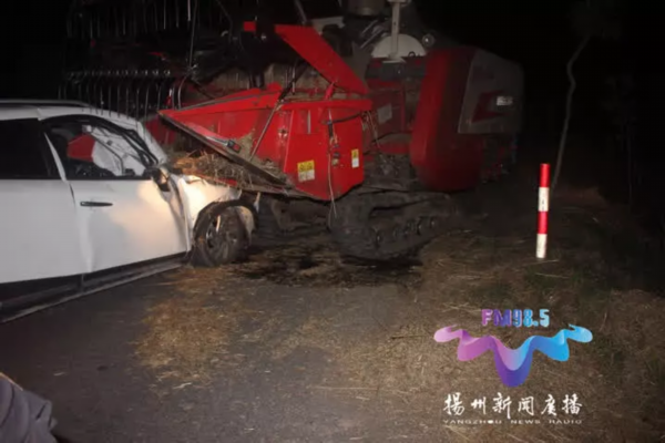 5月31日,高邮发生一起轿车撞上收割机的道路交通事故,车损严重,所幸人无大碍。6月3日,高邮警方通报了该起事故。