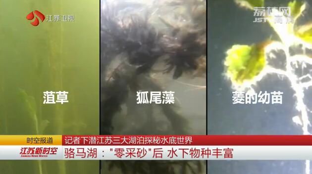 过去,骆马湖天然平均水深仅2到3米,而采砂区由于受到人为开采,水深可达30米,如今水底还有采砂时留下的坑洞和陡坡。记者在水下待了40分钟,最深潜到15米,在湖底发现了银鱼、乌鱼等不少特色鱼种。湖底荒漠中,还长出了菹草、狐尾藻、以及菱的幼苗。专家介绍,根据近年监测情况,骆马湖里肉眼可见的水生植物共有20多种,还有40多种底栖动物和130多种浮游植物。从水生态角度来看,状况良好。