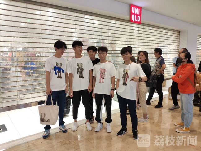6月5日,经历了前两天的上架又被一抢而空后,优衣库和美国潮牌kaws的联名限量款短袖又迎来了一次补货。今天上午九点,荔枝新闻记者到达位于南京德基的这家优衣库门店时,这里已经聚集了不少等候开门的顾客。有的组团而来,身上穿的正是这次发售的限量版联名T恤。