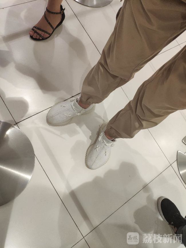 疯抢结束后,一位姗姗来迟的“潮牌粉”走进店里。此时距离门店营业才几分钟,面对早被一抢而空的货架,小姐姐明显有点懵。她告诉荔枝新闻记者,自己平时也会追一些潮牌,脚踩的鞋子就是kaws联名款。