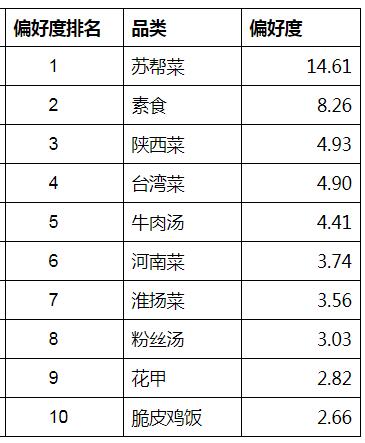 从偏好度来看,相比全国其他城市来说,苏州人最为偏爱的夜宵品类前五分别为苏帮菜、素食、陕西菜、台湾菜和牛肉汤。