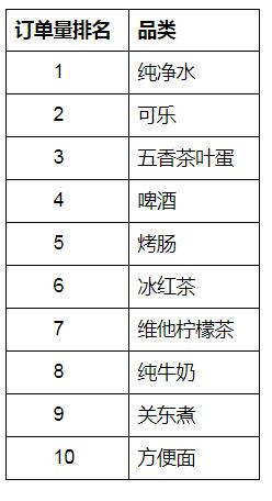 从订单量来看,苏州人半夜在便利店买最多的商品前三分别为纯净水、可乐和五香茶叶蛋。