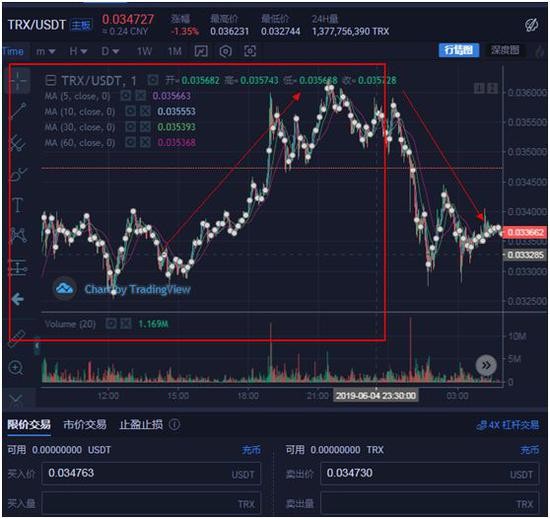 值得一提的是,当孙宇晨在社交媒体发出拍下巴菲特慈善午宴消息时,波场币(TRX)的交易价格便开始上涨,从0.02美元的低点最高涨至0.04美元,随后开始下跌,不少闻风买入的散户高位被套。