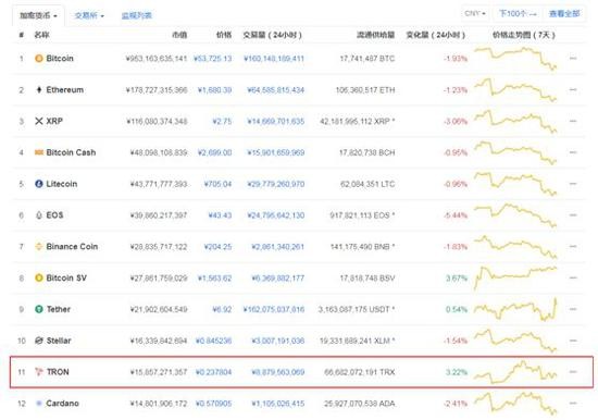 根据Coinmarketcap数据显示,波场币目前市值排名第11位,总市值约人民币158.57亿元,截至记者发稿时间,波场币报0.24元,交易量达到88.79亿个。