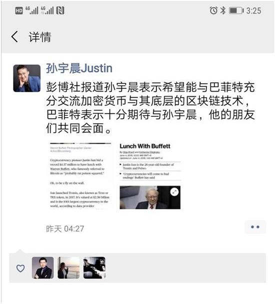 熊猫资本合伙人李论也在朋友圈发文称,“孙宇晨强拍巴菲特,是把中国人的脸丢到国际上去了,无疑给全世界传达非常错误的信息,进一步丑化了中国人的价值观”。