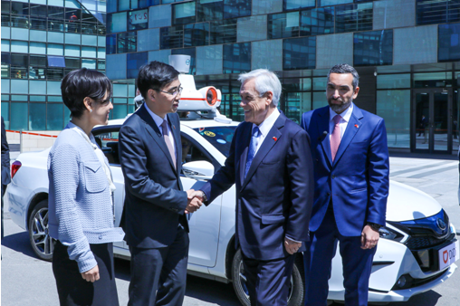 今年4月,智利总统皮涅拉在“一带一路”高峰论坛之际,造访滴滴总部并与滴滴CEO程维和总裁柳青进行了深入交流。皮涅拉总统表示欢迎滴滴前往智利发展,参与智利交通转型项目,助力达成本地的智慧城市和交通电气化目标。