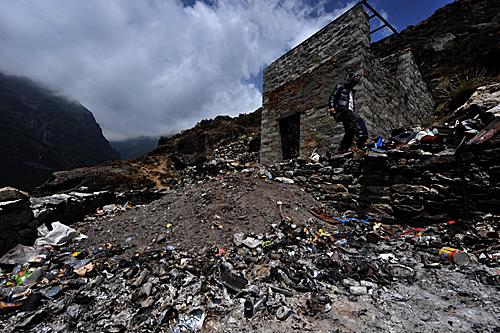 从远处看,珠穆朗玛峰白雪皑皑,巍峨壮丽,可环保人士都知道,那里覆盖着数量巨大的各种垃圾。(新华社)