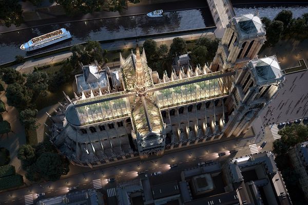 用当代建筑语言重新阐释的巴黎圣母院原屋顶和尖塔