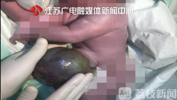 6月4日凌晨,淮安38岁的胡女士经剖宫产手术诞下一名9斤重的男婴。然而孩子腹部有一个巨大的透明包块,里面包裹着肠管和肝脏,医生诊断这是罕见的“巨型先天性脐膨出”。
