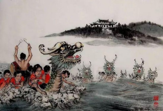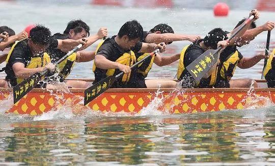 在端午这天,他们会举行在水面上作竞渡祭龙神,这便是龙舟竞渡习俗的由来。多个人同时集中在同一个龙舟上,通过全体成员有节奏的通力合作来赢得胜利 ,在这个过程中“同舟共济 、人舟合一” 是最高境界。