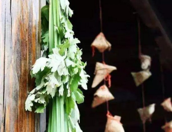 《荆楚岁时记》中记载曰“鸡未鸣时, 采艾似人形者,揽而取之,收以灸病,甚验。是日采艾为人 形,悬于户上,可禳毒气。”
