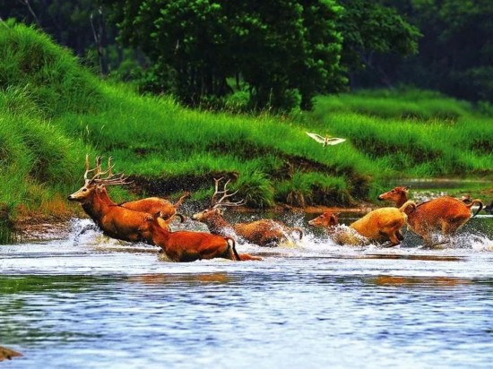 天然的生态环境,被两个珍稀动物看中,一个叫丹顶鹤,另一个叫麋鹿(俗称“四不像”)。这两种动物,是神话中太白金星和姜子牙的坐骑,又称“仙鹤神鹿”。